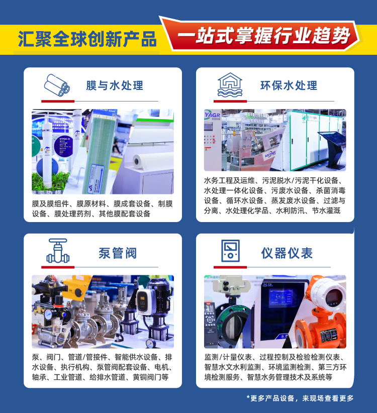 全方位展示企业的创新性解决方案和产品。横跨市政、工业、水环境领域,超50%的买家都在寻找来自海内外的新产品与新技术。